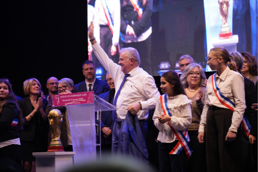Tout au long de son discours, le maire a filé la métaphore sportive, illustrée par la présence symbolique d’un trophée, pour rappeler que les réussites locales se construisent collectivement, « match après match ».
