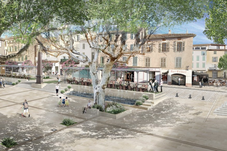 (ad) Dominique Lain, maire du Luc-en-Provence, au côté de Stéphane Comby, architecte à Flassans, en charge des travaux de la place de la Liberté.