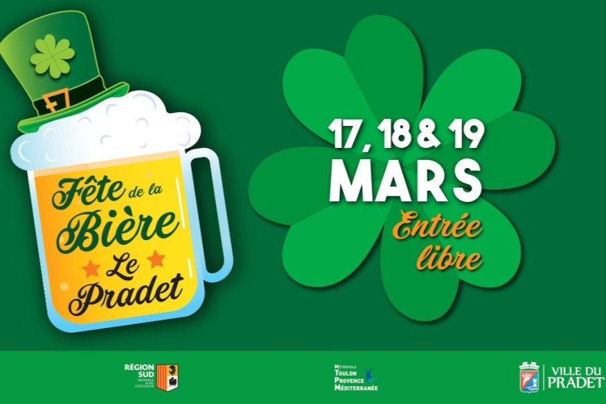 Rendez-vous désormais incontournable, la Fête de la Bière au Pradet aura lieu les 17, 18 et 19 mars 2023. Cette année à l'occasion de la Saint-Patrick le chapiteau arborera les couleurs vert et orange ! Groupes folkloriques, trèfles (à quatre feuilles, évidemment) et chapeaux haut de forme, bienvenue en Irlande !