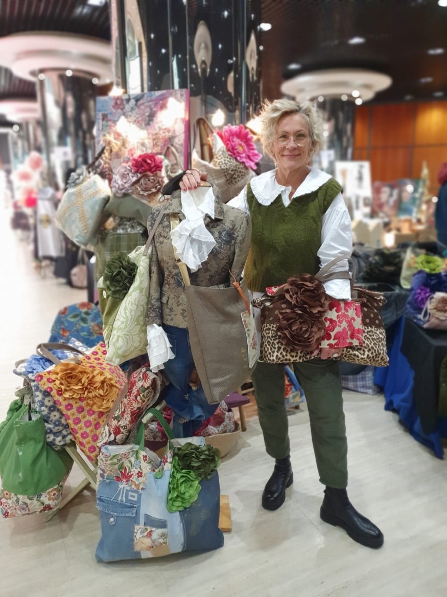 “Je ne raterai ce moment pour rien au monde ! » Pascale n’y va pas à demi-mots. Il faut dire qu’elle est l'une des plus fidèles créatrices de Fémin’art avec 14 participations. Amatrice passionnée par la couture, elle métamorphose les tissus d’ameublement en sacs à main. Des patchworks chamarrés arborant des motifs sauvages, organiques ou abstraits. Cabas, totes bags, besaces ou pochettes rivalisent de fantaisie et s’estampillent des initiales LGP (La Grande Pascale), comme un gage de fabrique. Inspirée par la nature, la dynamique toulonnaise ancre sur chacune de ses créations tissées, des fleurs monumentales, qu’elle confectionne elle-même à partir de… tissus, bien sûr !