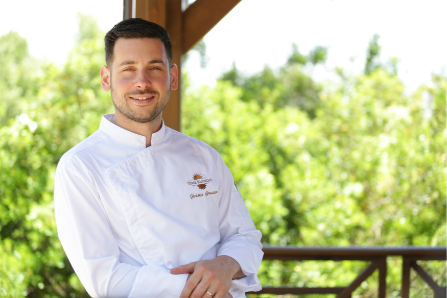 Jérémie Gressier : « Terre Blanche, c’est un lieu d’excellence et de nature. Je cherche à retranscrire ce raffinement et cette élégance dans mes desserts. Le sapin s’est imposé naturellement : il évoque à la fois la végétation du domaine et la magie de Noël. Nous valorisons aussi les circuits courts et les produits locaux, une dimension importante pour moi. »